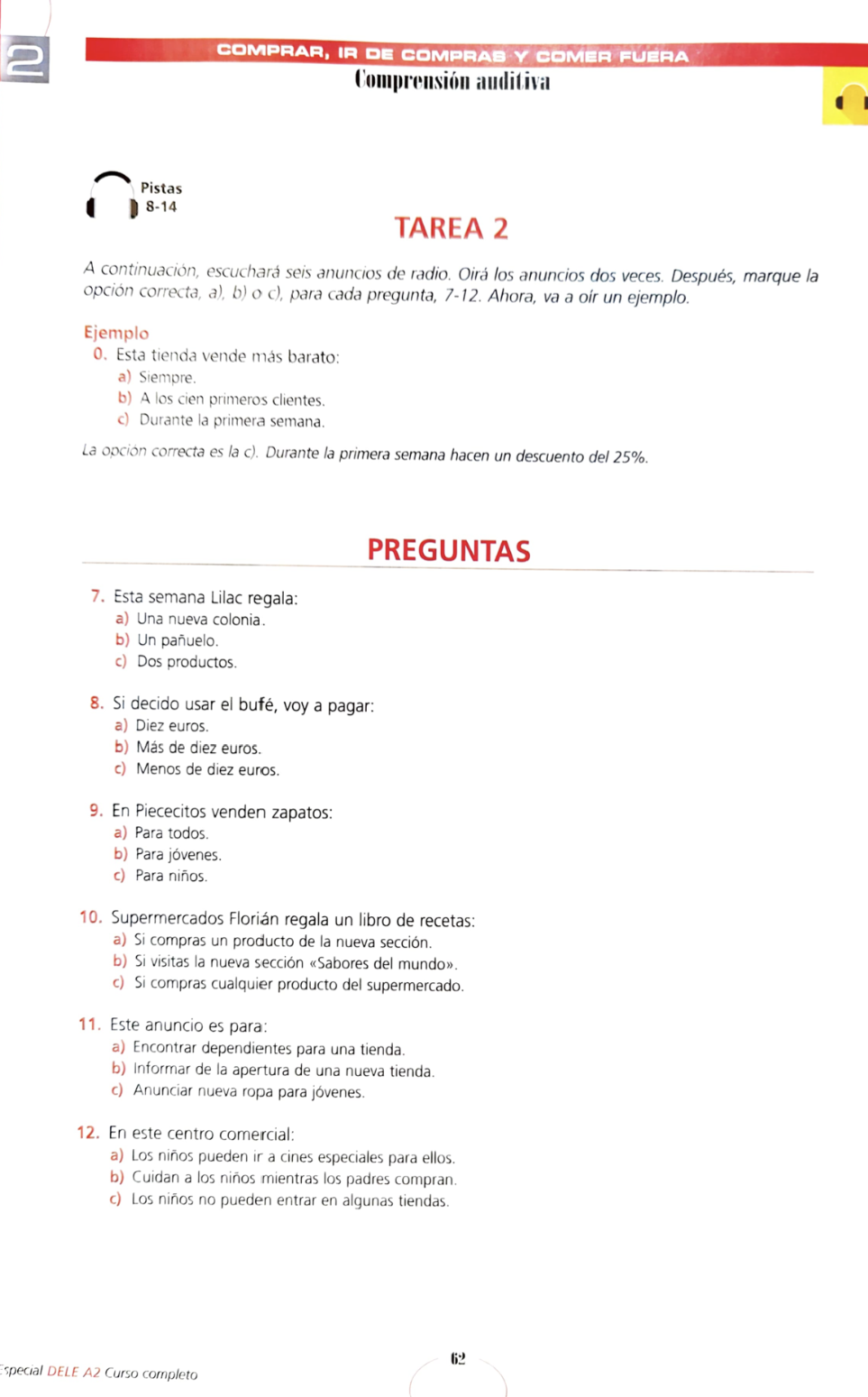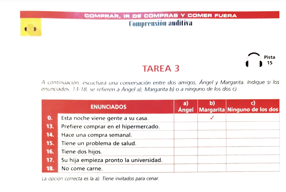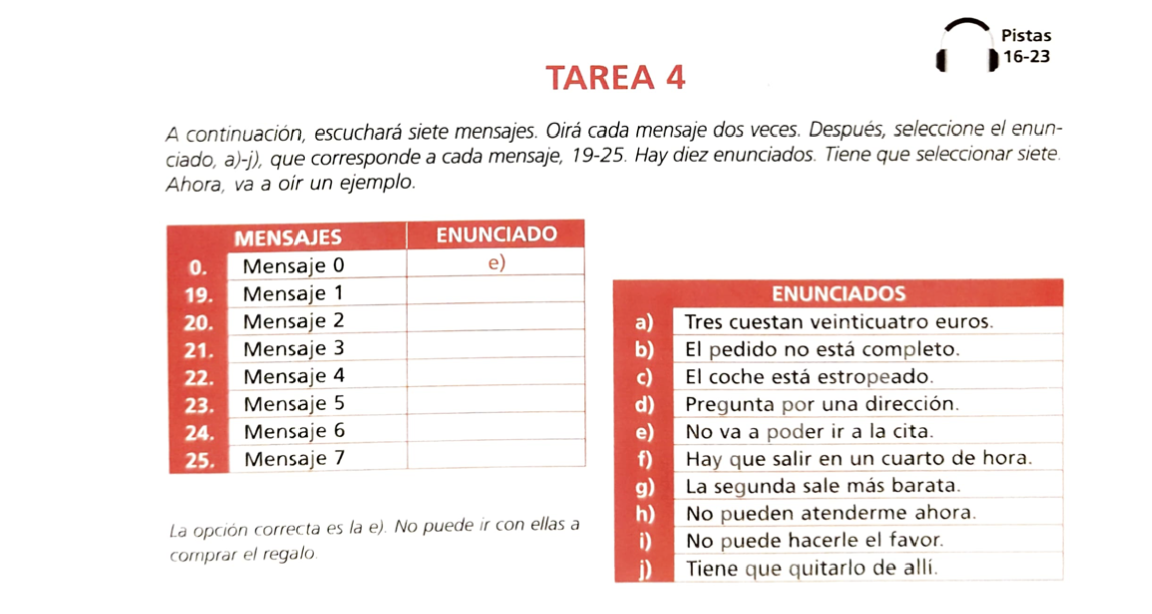 HOME DELE A2 対策問題集 第2回聴き取り問題 TAREA 1(1)を PDF で開く TAREA 1(2)を PDF で開く TAREA 1 のテキスト を PDF で開く TAREA 1 の問題の音声を聴く TAREA 2 を PDF で開く TAREA 2 のテキストを PDF で開く TAREA 2 の問題の音声を聴く TAREA 3 を PDF で開く TAREA 3 のテキストを PDF で開く TAREA 3 の問題の音声を聴く TAREA 4 を PDF で開く TAREA 4 のテキストを PDF で開く TAREA 4 の問題の音声を聴く